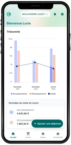 C’est la force de l’approche tout-en-un : en connectant votre compte pro, toutes les transactions sont importées et analysées en temps réel. Grâce à une catégorisation fine (automatique ou manuelle) des encaissements et décaissements, vous obtenez des statistiques précises sur votre situation financière actuelle et à venir.