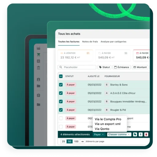 Avec les formules supérieures, il est aussi possible de synchroniser et effectuer le paiement de vos achats depuis votre compte pro Qonto.
