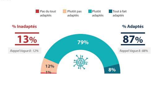 Plus de 8 entreprises sur 10 s’estiment satisfaites des mesures de sécurité mise en place sur le marché. Parmi elles, 8 % trouvent les solutions “tout à fait adaptées” et 79 % “plutôt adaptées.” L’étude relève qu’1 % des entreprises interrogées ne sont pas du tout satisfaites des services de sécurité disponibles sur le marché. Ces données sont stables depuis 2020.